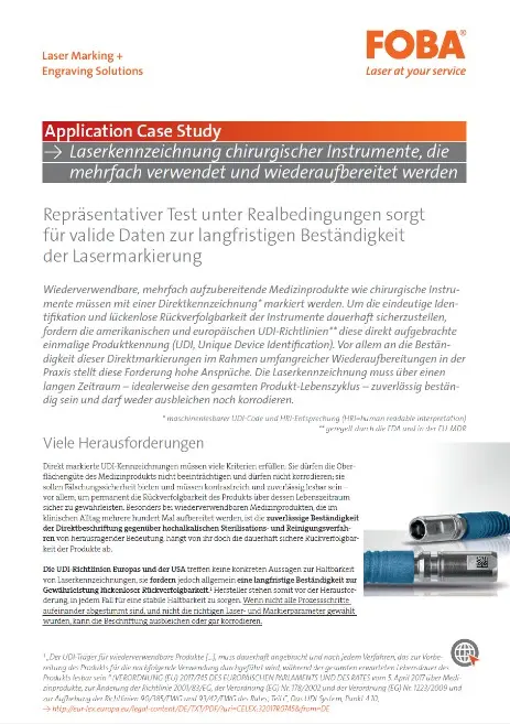 Laserkennzeichnung chirurgischer Instrumente, die mehrfach verwendet und wiederaufbereitet werden